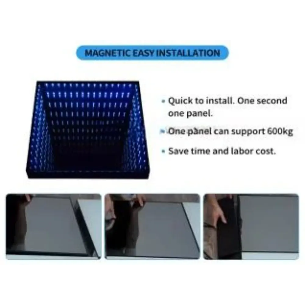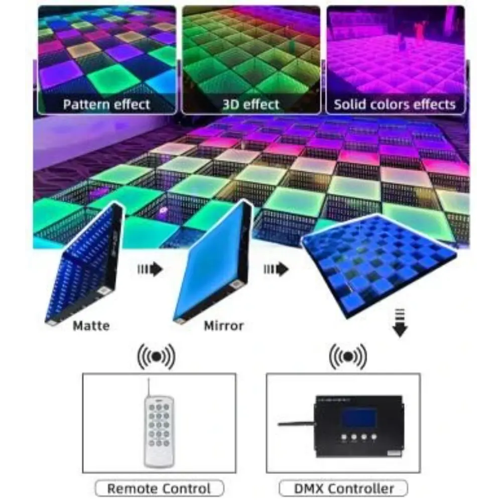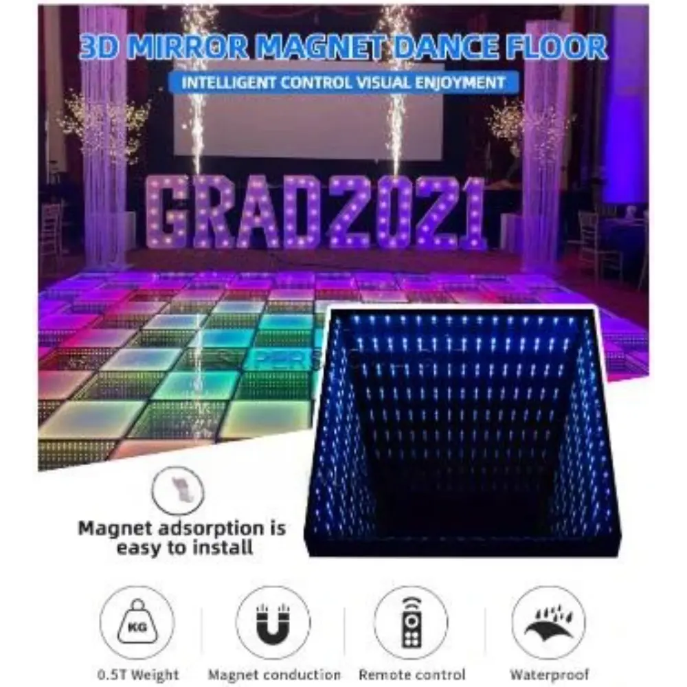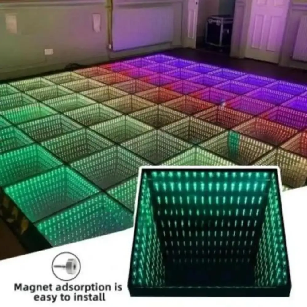 La Pista da Ballo Interattiva a LED con Specchio Infinito 3D è un prodotto innovativo e visivamente accattivante progettato per migliorare qualsiasi evento. Caratterizzato da una combinazione di tecnologia a specchio 3D e luci LED, questo dance floor crea un’impressionante illusione di profondità infinita e colori vivaci. Il pavimento è composto da singoli pannelli LED che mostrano vari motivi, colori ed effetti, rendendolo perfetto per creare un’atmosfera dinamica e interattiva. Ideale per matrimoni, feste, discoteche e altri eventi speciali, il dance floor può essere personalizzato per adattarsi al tema e all’umore dell’occasione. Il dance floor è controllato da un controller DMX e da un telecomando, che consente di regolare gli effetti di illuminazione in base alle proprie preferenze. È progettato per essere durevole, facile da installare e sicuro. I magneti integrati aiutano i pannelli a incastrarsi saldamente, il che riduce al minimo la necessità di strumenti complessi o lunghi tempi di installazione. La Pista da Ballo Interattiva a LED con Specchio Infinito 3D lascerà un’impressione duratura sugli ospiti, offrendo un’esperienza unica e indimenticabile mentre ballano tutta la notte su un pavimento che sembra estendersi all’infinito.