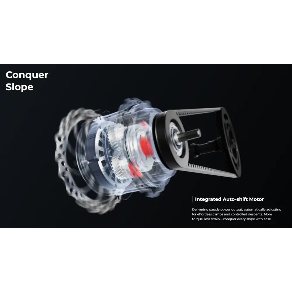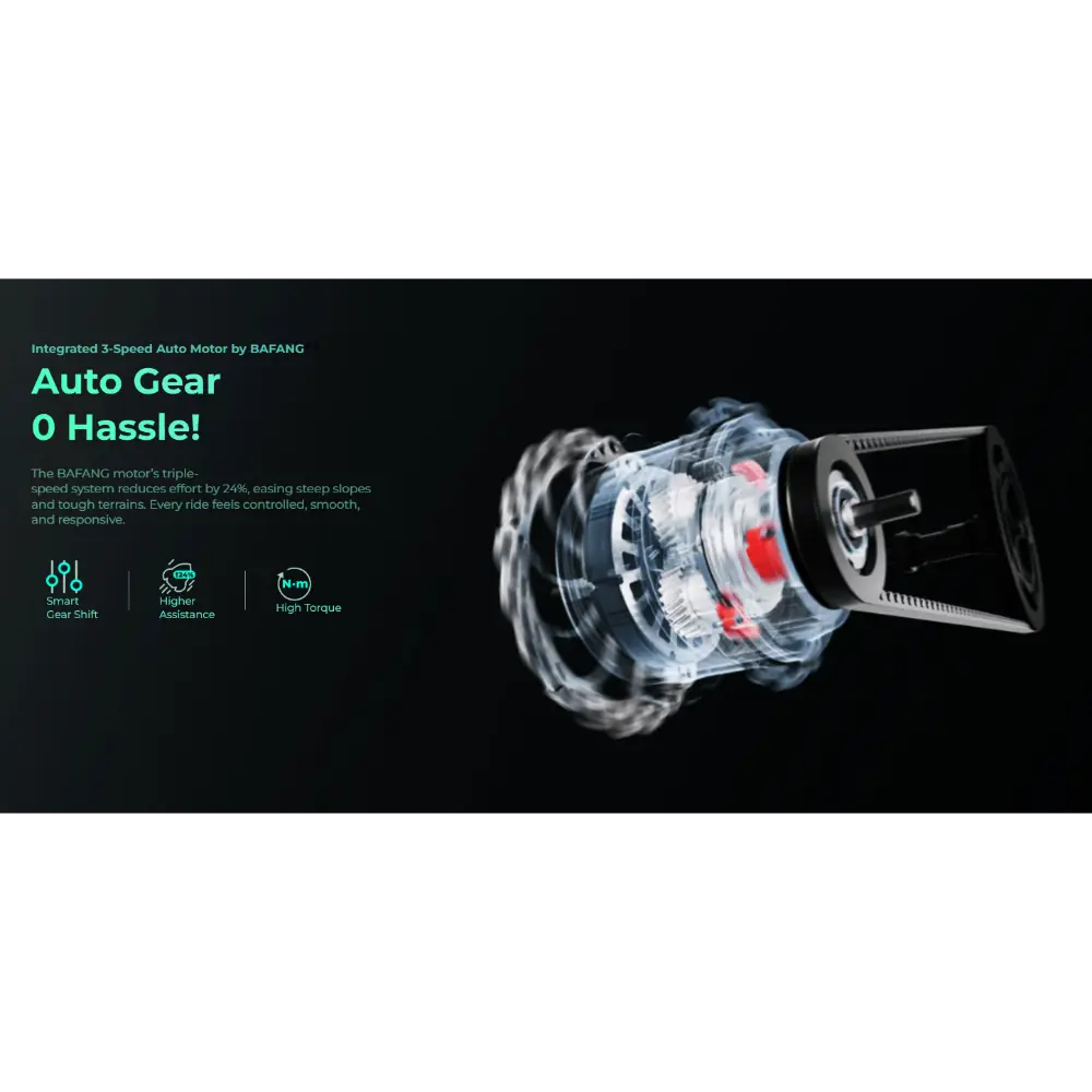 - Motor: 250W Bafang H700 hub motor with 2-speed automatic transmission