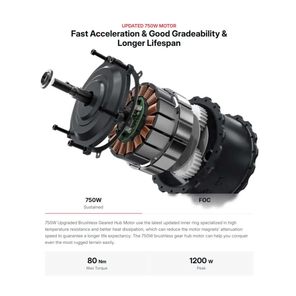 - Motore: motore del mozzo con ingranaggi da 750 W