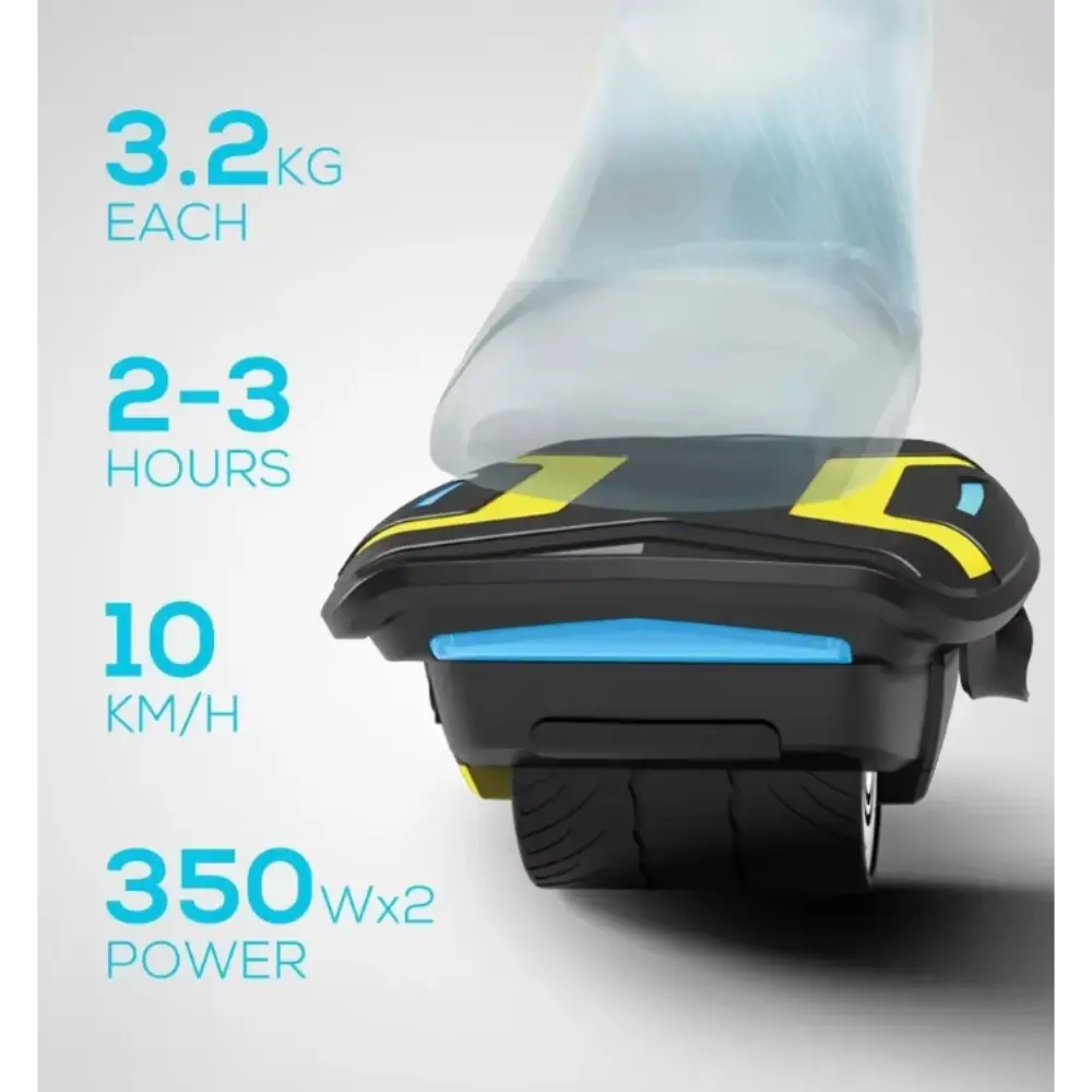 Hovershoes – Monopattino Autobilanciante è un innovativo dispositivo di mobilità personale che unisce divertimento e funzionalità. Le ruote in poliuretano (PU), con un diametro di 90 mm, offrono prestazioni fluide e durature. Alimentati da due motori da 350 W, sono leggeri, pesano 3,5 kg ciascuno, ma hanno una potenza incredibile. Una caratteristica distintiva è la loro portabilità. Ogni unità è compatta e leggera, il che le rende facili da trasportare quando non vengono utilizzate. Ciò è particolarmente utile per i pendolari o per coloro che desiderano utilizzarle in modo intermittente durante il giorno. Possono supportare un carico massimo di 100 kg, garantendo l’accessibilità per molti utenti. Sono personalizzabili in colori come nero, verde, rosso o persino su misura per le tue preferenze. Possono raggiungere velocità fino a 10 km/h, a seconda delle condizioni stradali e del peso del conducente. Superano anche pendenze fino a 10° e hanno un’autonomia di 5-8 km, influenzata dal peso del conducente. Dotati di una batteria LG da 25,2 V, 2 Ah (7 celle per scarpa), impiegano circa 2-3 ore per caricarsi utilizzando un caricatore da 29,4 V, 1,5 Ah. Hovershoes – Monopattino Autobilanciante ridefinisce la mobilità urbana con il suo design elegante e le sue specifiche impressionanti!