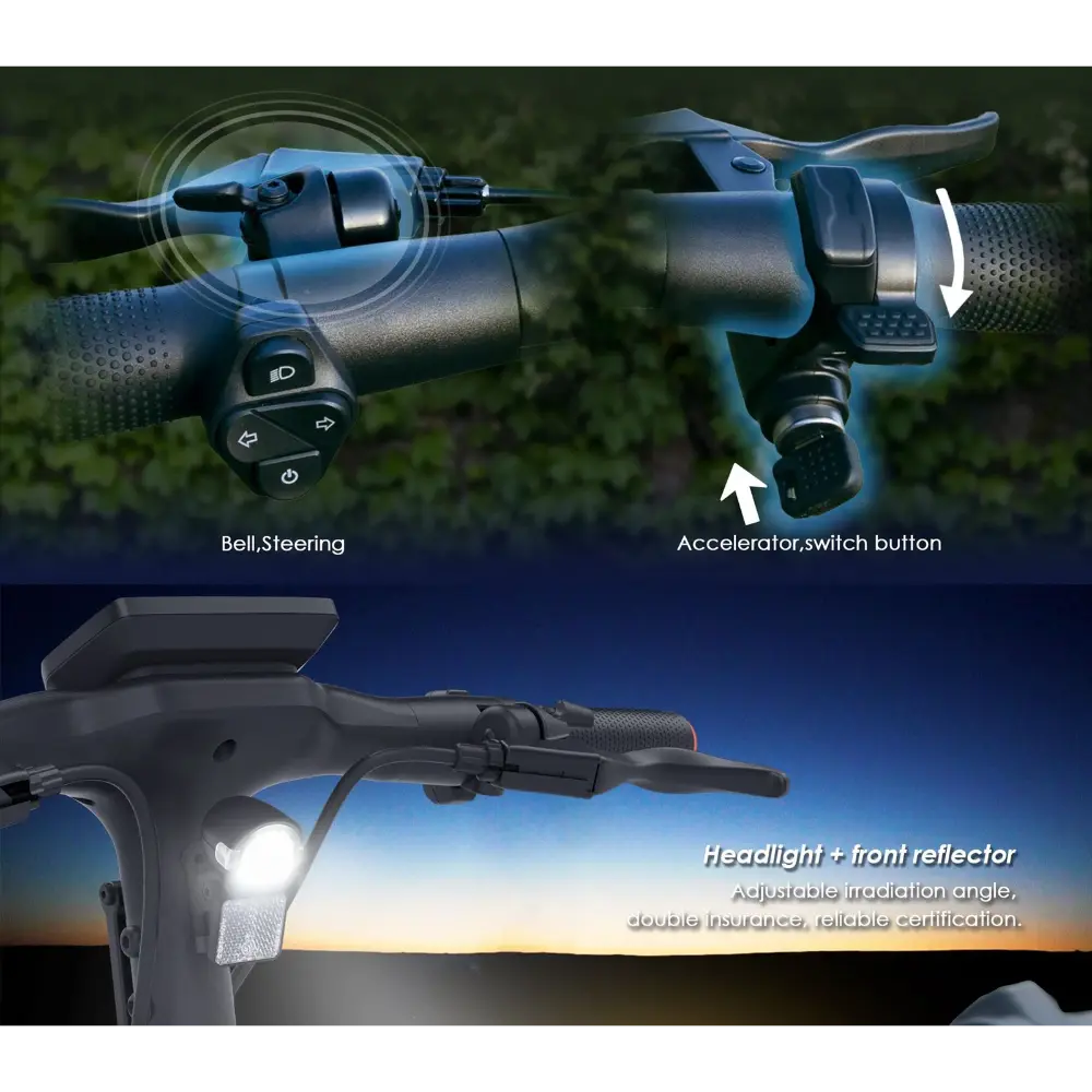 - Manubrio: Impugnatura ergonomica con acceleratore e pulsante multifunzione