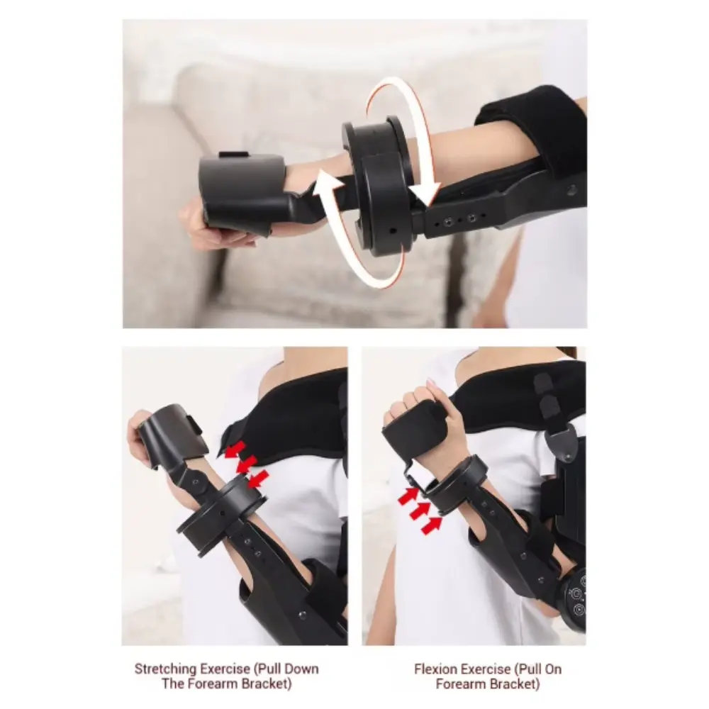 Il Dispositivo Robotico per la Riabilitazione del Gomito è un dispositivo riabilitativo specializzato, progettato per assistere le persone in fase di recupero da infortuni al braccio, interventi chirurgici o condizioni che compromettono la mobilità del gomito. Progettato per l’uso domestico, questo attrezzo elettrico facilita i movimenti controllati di flessione ed estensione dell’articolazione del gomito, rendendolo ideale per pazienti con distorsioni, rigidità post-operatoria o mobilità limitata. Il suo meccanismo motorizzato consente agli utenti di piegare e raddrizzare gradualmente il braccio, promuovendo l’attivazione muscolare e la flessibilità articolare senza sforzi eccessivi. Il dispositivo è dotato di impostazioni di velocità e angolazione regolabili, consentendo sessioni di terapia personalizzate in base alla fase di recupero dell’utente. Il suo design ergonomico garantisce il comfort durante l’uso, mentre i comandi intuitivi lo rendono accessibile anche agli utenti anziani o con mobilità ridotta. Simulando movimenti passivi e attivi, supporta gli obiettivi della fisioterapia come la riduzione del dolore, il miglioramento della circolazione e il ripristino della mobilità funzionale del braccio. Compatto e portatile, è una soluzione pratica per una riabilitazione costante a casa.