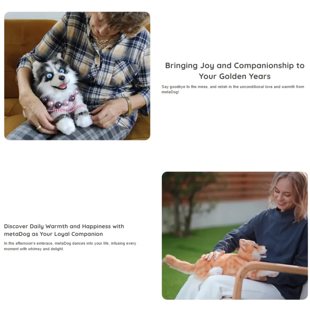 Il MetaDog Cucciolo Robotico è un cucciolo robotico realistico, progettato per offrire compagnia emotiva attraverso comportamenti realistici, interazione tattile e riconoscimento vocale. È un sofisticato animale domestico robotico che imita il fascino e il calore dei cani veri, ispirandosi in particolare alle razze Husky e Shiba Inu. Con un peso di soli 930 g e dimensioni di 560 x 150 x 210 mm, è realizzato in morbida pelliccia sintetica e silicone alimentare per un’esperienza sicura e delicata sulla pelle. I suoi espressivi occhi a LED, i movimenti dinamici della testa e le animazioni della coda lo rendono vivo, rispondendo a oltre 30 comandi vocali e sensori tattili posizionati su mento, petto, testa e schiena. Alimentato da una batteria da 2000 mAh, offre 10-12 ore di gioco interattivo e si ricarica tramite USB-C in soli 40 minuti. Il MetaDog può ansimare, abbaiare, ululare, sbattere le palpebre e strizzare gli occhi, creando un’esperienza profondamente immersiva. Ideale per bambini, anziani o chiunque non possa possedere un vero animale domestico, unisce l’intelligenza artificiale al calore emotivo per offrire compagnia senza sporcare.
