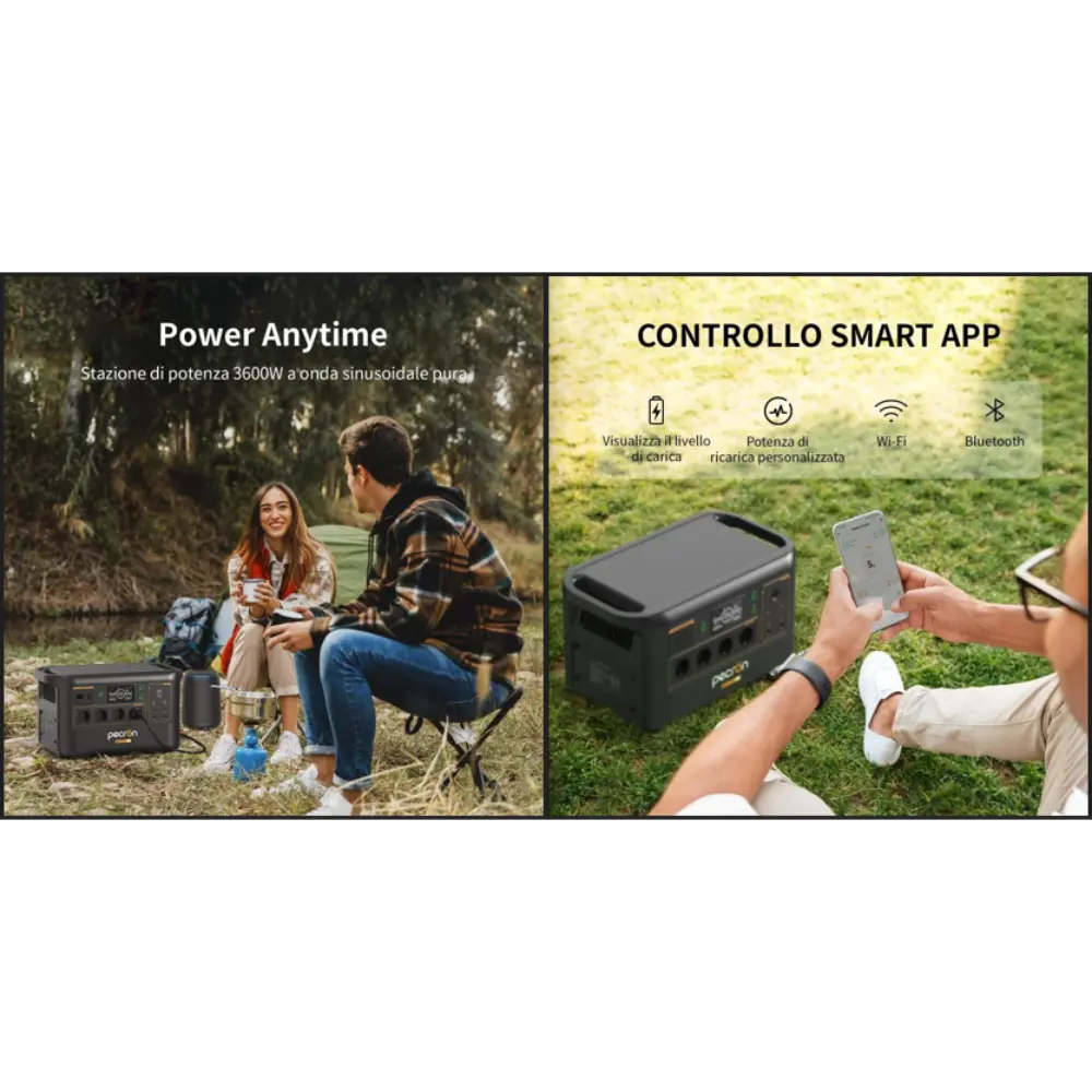 La Pecron F3000LFP Centrale Elettrica Portatile Espandibile 3072Wh è una soluzione energetica versatile e ad alta capacità, progettata per il backup domestico, le avventure all’aperto e l’uso di emergenza. È dotata di una potente batteria LiFePO4 da 3072 Wh abbinata a un’uscita CA a onda sinusoidale pura da 3600 W, che la rende in grado di alimentare elettrodomestici pesanti come frigoriferi, condizionatori d’aria e utensili elettrici. Con 11 porte di uscita, tra cui quattro prese CA, due USB-C (una con supporto PD da 100 W per laptop), due USB-A, una porta di ricarica per auto e due uscite CC, può caricare più dispositivi contemporaneamente, da droni e fotocamere a dispositivi CPAP e laptop. Una delle sue caratteristiche distintive è la ricarica ultraveloce: l’unità può ricaricarsi dallo 0% al 100% in sole due ore tramite ingresso CA, supportando anche la ricarica solare fino a 1600 W e la ricarica per auto. Integra la funzionalità UPS con un tempo di commutazione di 8-20 ms, garantendo un’alimentazione ininterrotta per i dispositivi elettronici sensibili. Il controllo intelligente tramite app consente il monitoraggio in tempo reale del consumo energetico, migliorando l’efficienza e la praticità. Costruito con celle LiFePO4, l’F3000LFP offre una durata eccezionale, mantenendo oltre l’80% della capacità dopo 3500 cicli. Nonostante le sue prestazioni robuste, rimane portatile con un peso di 28,7 kg, e dimensioni compatte di 34,8 × 24,6 × 19,5 cm. È coperto da una garanzia di 2+3 anni e viene fornito con accessori essenziali, inclusi cavi di ricarica CA, solare e per auto. Il Pecron F3000LFP è un generatore portatile potente, affidabile e pronto per il futuro, ideale per chiunque abbia bisogno di energia affidabile a casa o in viaggio.