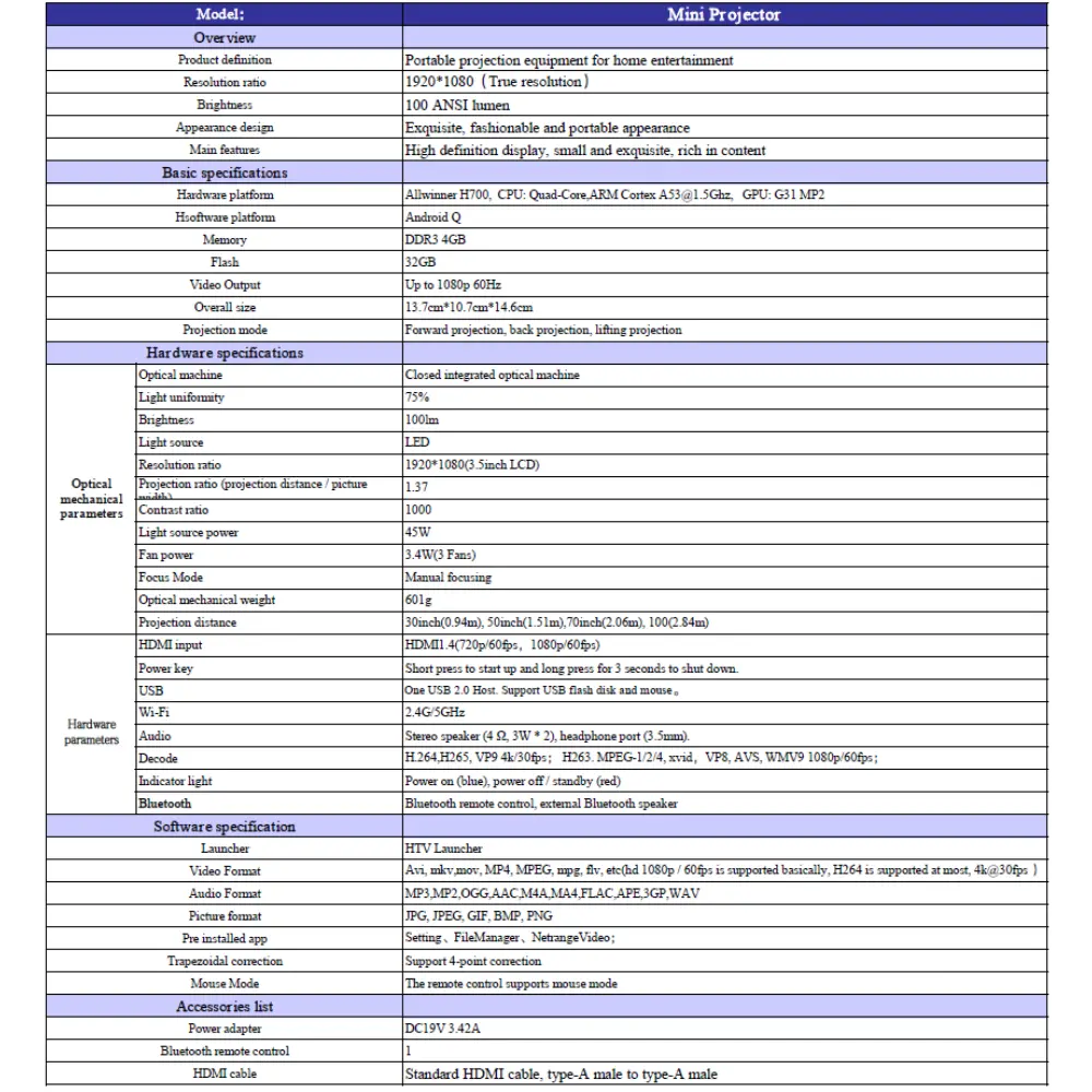 Proiettore Interattivo Android Portatile ad Alta Risoluzione – Specifiche