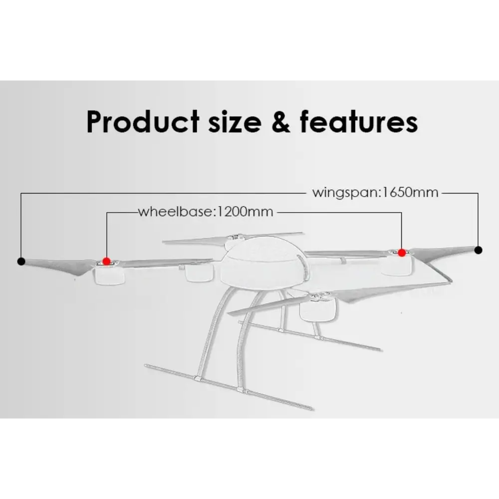 1 x Telaio per quadricottero in fibra di carbonio YD4-1000S 4 x Motori T-Motor 4 x ESC T-Motor 2 x Eliche Falcon 29×8,7 pollici 1 x Controller di volo CUAV V5+ con modulo GPS NEO V2 1 x Radiocomando YR16S a 16 canali 2 x Tattu 6S 25000mAh 22,8V Li-Ion ad alta tensione 1 x Servizio di assemblaggio e collaudo 1 x Software di controllo a terra LAUNCH