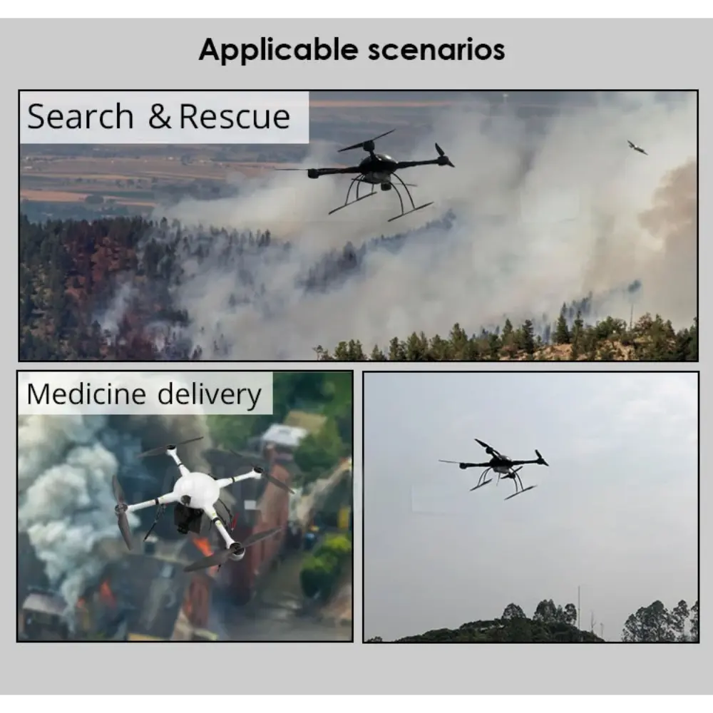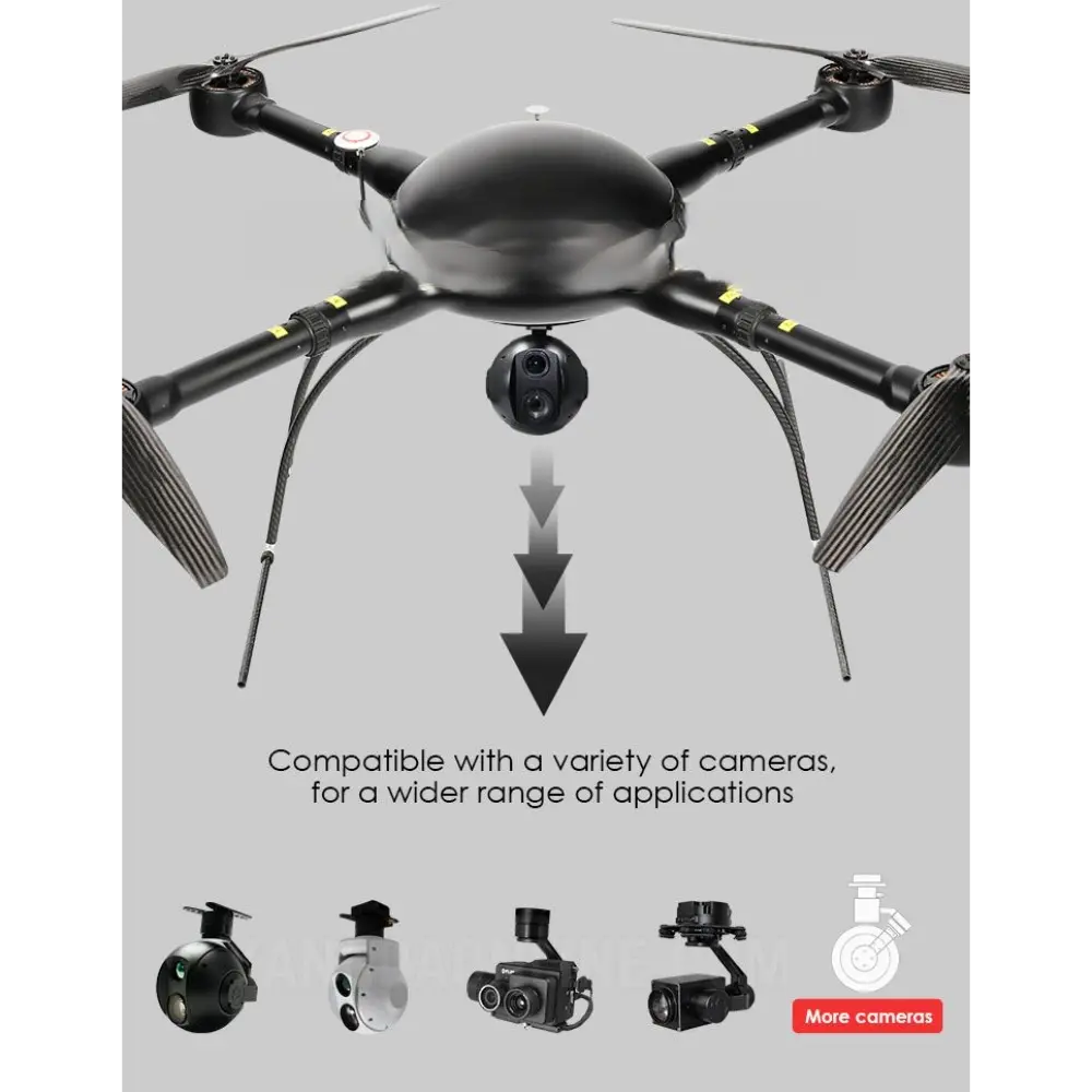 Il Quadricottero Professionale a Lunga Autonomia di Volo è un drone ad alte prestazioni progettato per applicazioni professionali come videosorveglianza, missioni di ricerca e soccorso e altro ancora. La sua struttura monoscocca impermeabile in fibra di carbonio garantisce durata e affidabilità in condizioni ambientali estreme, tra cui pioggia e temperature sotto lo zero. Grazie al design leggero e al potente sistema di propulsione, questo quadricottero vanta un’impressionante autonomia di volo fino a 60 minuti con un carico utile di 2,35 chilogrammi. È dotato di bracci inseribili per un facile trasporto e una rapida installazione, rendendolo operativo in cinque minuti. Il drone è dotato di un sistema di propulsione T-Motor, noto per la sua stabilità e l’alta qualità. Inoltre, supporta diverse opzioni di carico utile, tra cui telecamere, gimbal e persino megafoni per droni. Il suo software di controllo a terra LAUNCH, intuitivo, consente ai principianti di utilizzarlo efficacemente senza alcuna esperienza di pilotaggio. Questo quadricottero versatile e robusto è ideale per compiti impegnativi in ​​ambienti difficili.