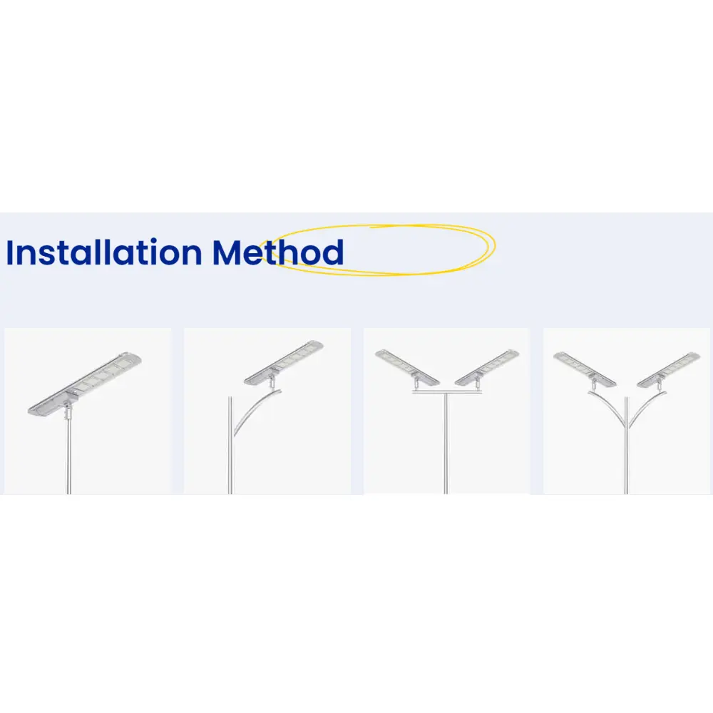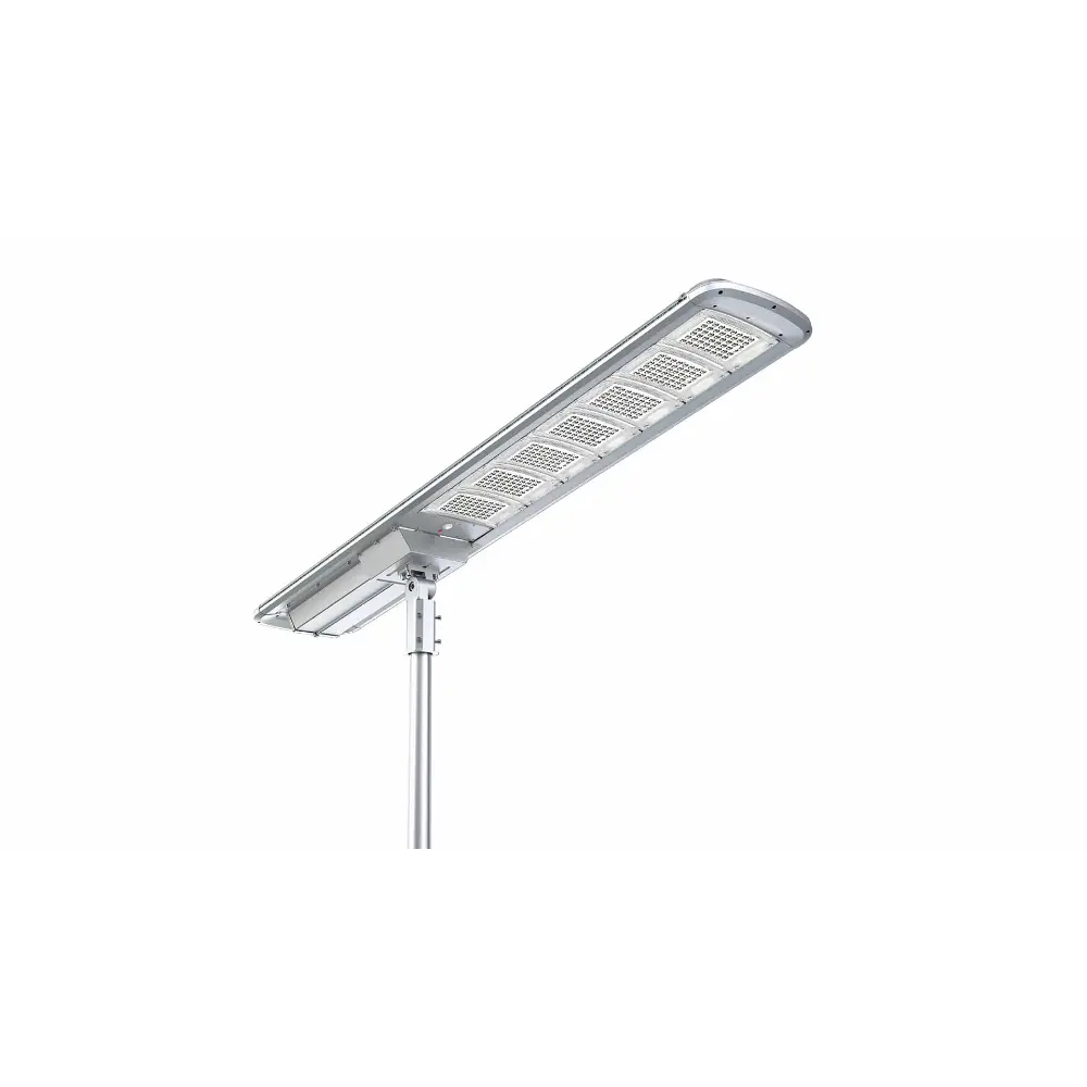 THERMOS 2 SSL-73A LED: 6000LM 4000K Batteria agli ioni di litio: 14,8V 384,8WH Pannello solare: 47,5W / 16,2V Tempo di ricarica: ≤ 8,8 ore Altezza di installazione: 6 m Impermeabilità: IP65 Garanzia: 3 anni Materiale: Alluminio 1. Design tutto in uno 2. Con sensore PIR 3. Elevata efficienza luminosa, 230 lm/w 4. Tecnologia ALS 5. Pulizia automatica da polvere e neve