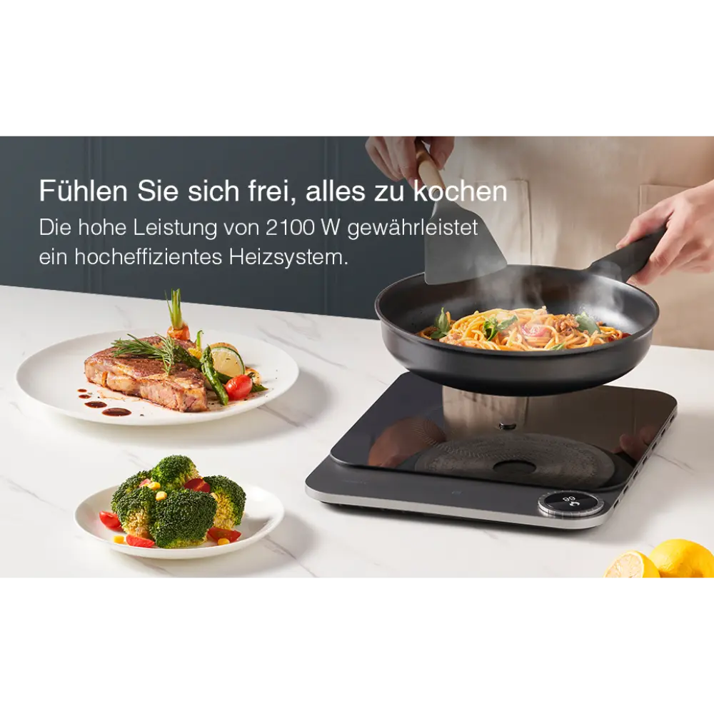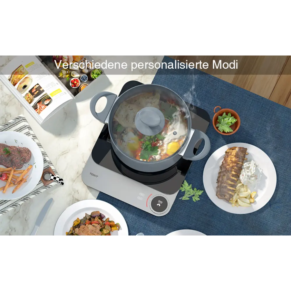 Il TOKIT Piano Cottura a Induzione con Potenza 2100 W è un apparecchio di cottura portatile elegante e moderno, progettato per garantire efficienza e precisione. I suoi 99 livelli di potenza regolabili offrono un controllo ineguagliabile sulle temperature di cottura, rendendolo adatto a diverse attività culinarie, dalla cottura a fuoco lento alla rosolatura ad alta temperatura. La superficie in vetro resistente del piano cottura aggiunge un tocco di eleganza, pur essendo resistente a macchie e graffi, rendendolo incredibilmente facile da pulire. Il display OLED offre un’interfaccia chiara e intuitiva, mentre il timer integrato garantisce tempi di cottura precisi. Una delle sue caratteristiche distintive è il design ultrasottile da 20 mm, che consente di risparmiare spazio e aggiunge un tocco di eleganza alla cucina. Il piano cottura è dotato di un sensore di temperatura esterno per un monitoraggio e un controllo accurati della temperatura. Supporta inoltre la connettività tramite app, consentendo agli utenti di gestire le impostazioni e accedere a modalità di cottura specializzate come la cottura sottovuoto o la preparazione dello yogurt tramite smartphone. Realizzato in vetro resistente, il piano cottura è facile da pulire e manutenere, combinando stile e praticità per le cucine moderne.