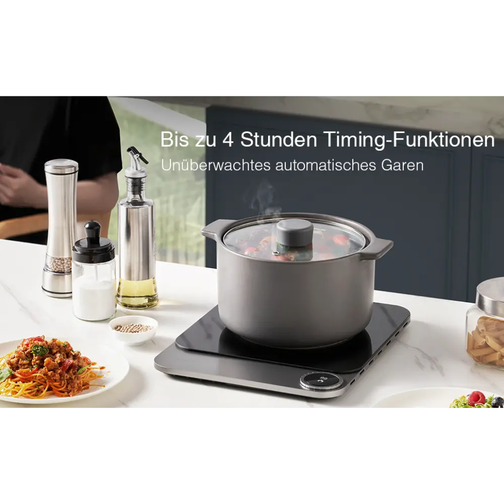- Le caratteristiche di sicurezza includono protezione dal surriscaldamento, rilevamento della pentola non funzionante e spegnimento automatico