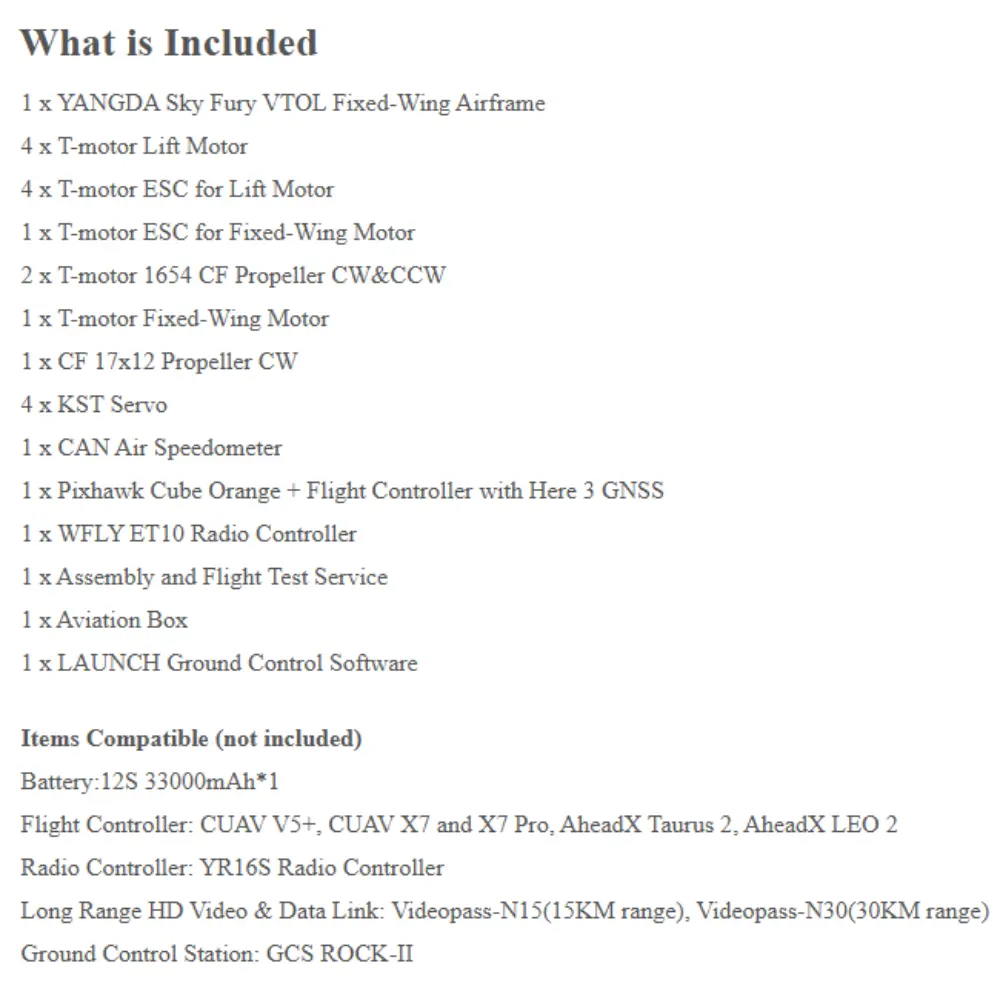 YANGDA Sky Fury Drone VTOL a Lunga Autonomia – Specifiche: